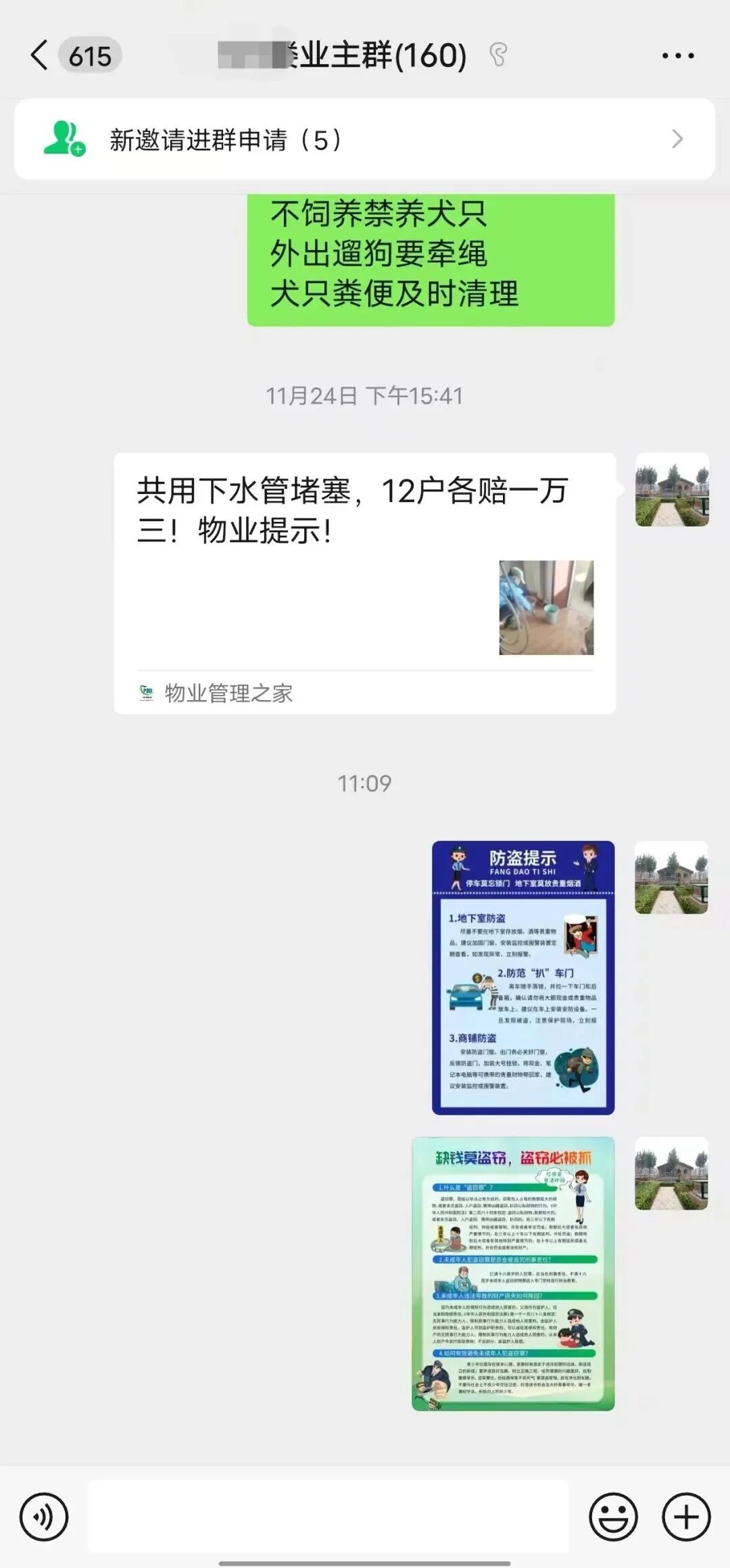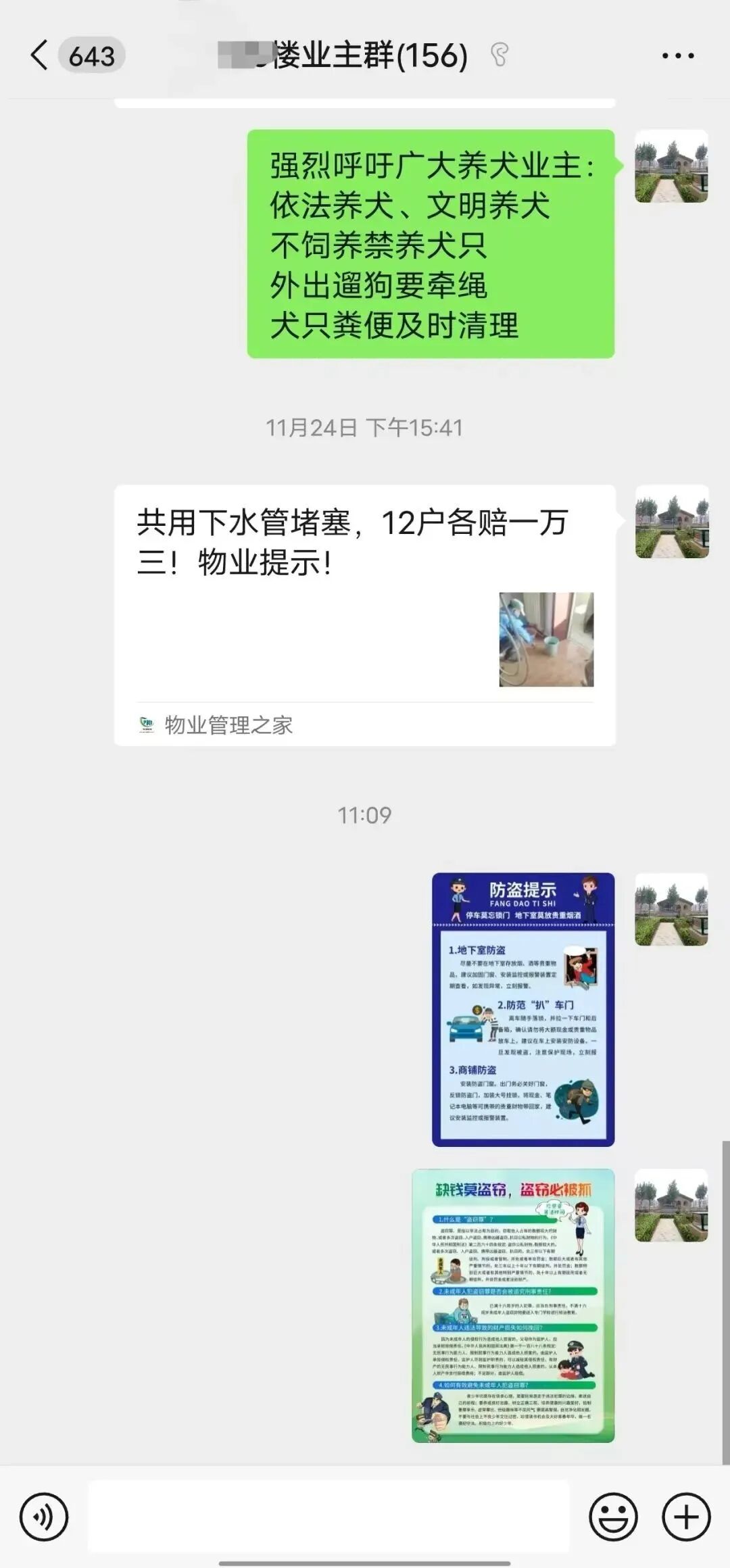在“线下”宣传的同时,广泛开展“线上”宣传工作,利用微信群,联系物业在小区业主群转发防盗宣传海报。